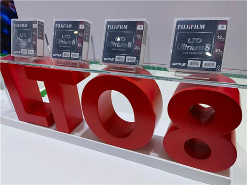 富士胶片的数据流磁带分成两条产品线,一个是比较主流的LTO数据流磁带;另一个是企业级。LTO发展近20年,最初的磁带容量较小,仅有几十个或几百个GB,但现在的LTO第8代产品LTO8数据流磁带采用先进的BaFe钡铁氧体专利技术,原始容量12TB单盘,压缩后30TB,数据传输速率最高达750MB/S,数据保存时间可超过50年,这些数据表现较硬盘都更胜一筹。据骆总介绍,今年9月份,富士胶片还将发布LTO9,单盘能到18TB、压缩之后达45TB。