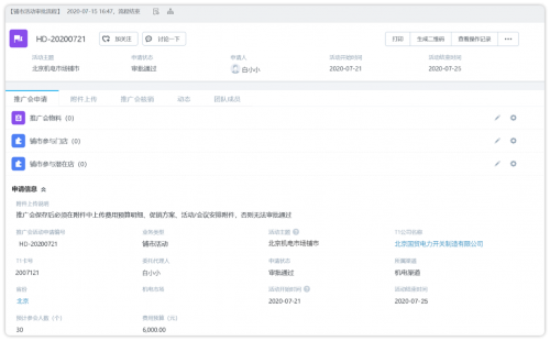 线下门店打开了产品走向市场的通路,但产品最终进入市场,还需要依靠渠道推广活动,来帮助产品铺市。借助CRM推广活动管理,实现从活动申请、执行到费用核销的全流程管理,并通过小程序和二维码,让经销商的销售直接参与活动管理,高效收集客户信息。
