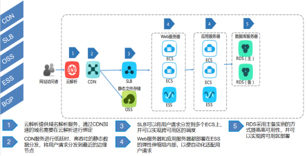 2.运用弹性伸缩、应用层缓存和数据库读写分离实现撑得住、高弹性,高性能。弹性伸缩可以通过云监控掌握服务器集群的情况,当某个CPU的使用率大于某个阈值的时候,即可触发伸缩活动,按照伸缩规则将云服务器加入集群,而当云服务器的使用率低于某个阈值时,系统又可以将云服务器释放,从而使应用服务器的规模始终能贴近实际业务需求,达到既能撑得住,又能降成本的目的。此外,还可以通过缓存数据库如Redis,降低数据库的访问压力;通过数据库读写分离,利用只读实例满足大量的数据库读取需求,以此增加应用的吞吐量,从而提升数据库的性能。