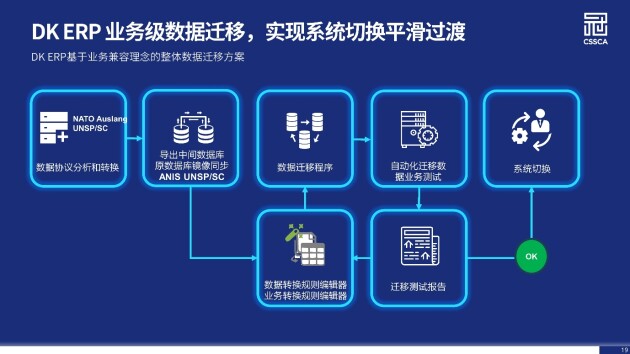 该模式下,现有系统的数据库将透过迁移工具以批处理方式运行,并最终将历史业务数据全部导入DK ERP平台数据库的客户实例中。具体处理流程如下:
