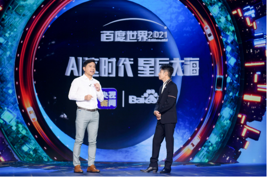 (百度创始人、董事长兼首席执行官李彦宏与撒贝宁在央视直播间畅谈AI出行生活)