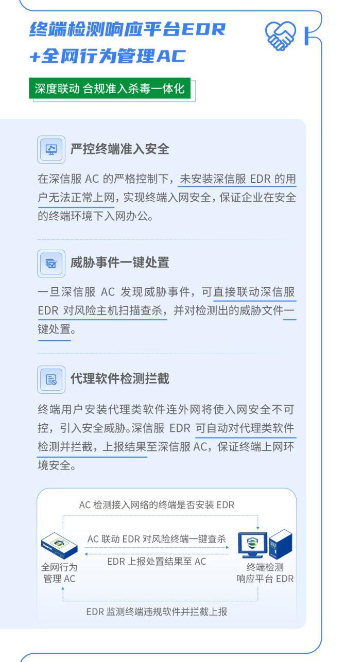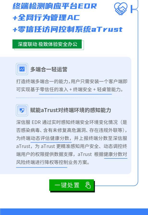 如何解决这些问题?深信服通过终端与网络安全产品的牵手联动,实现一键便捷处置。