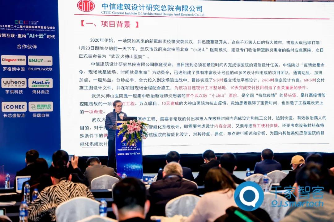 从顶层设计、概念打造、系统构建、平台连接,再到实际应用落地,一个成功的项目案例对智能建筑领域都有着重大的意义和价值。在《从火神山医院谈智慧医疗电气设计要点》主题演讲中,中信建筑设计研究院总院有限公司副总工程师李蔚分享包括信息网络系统、综合布线、有限电视、公共广播、会议、设备监控、火灾报警、安全技术防范、医疗专业业务系统、智慧运维可视化平台、备及管线安装、模块化设计等板块的工程概况。
