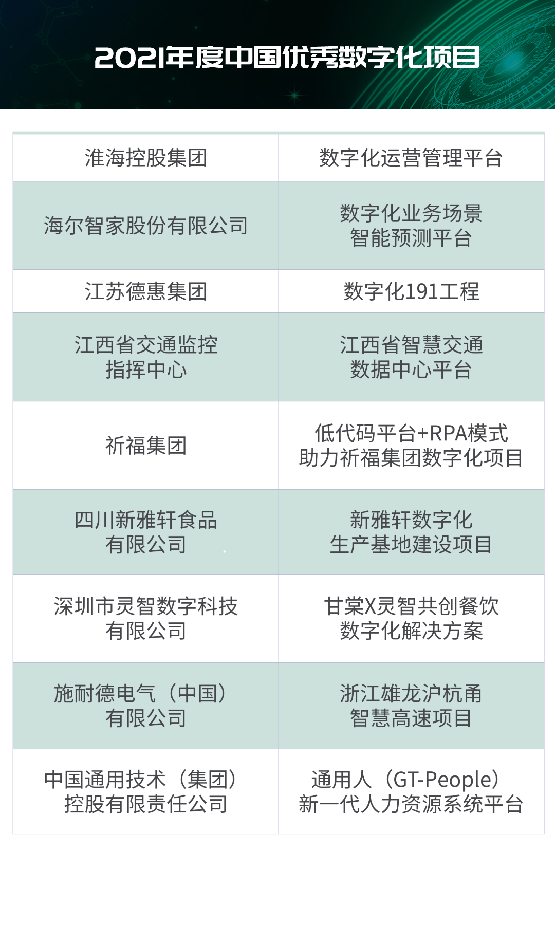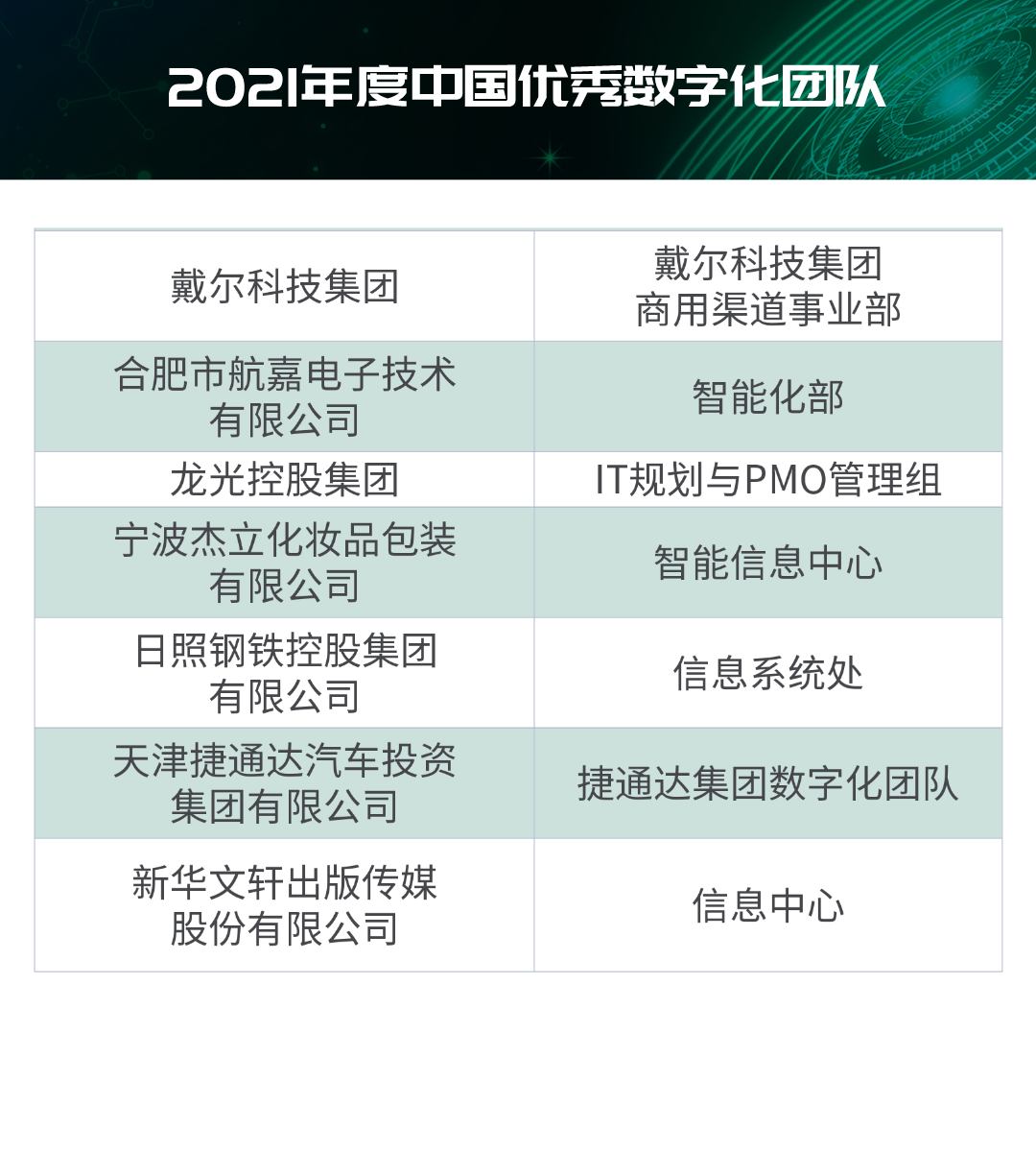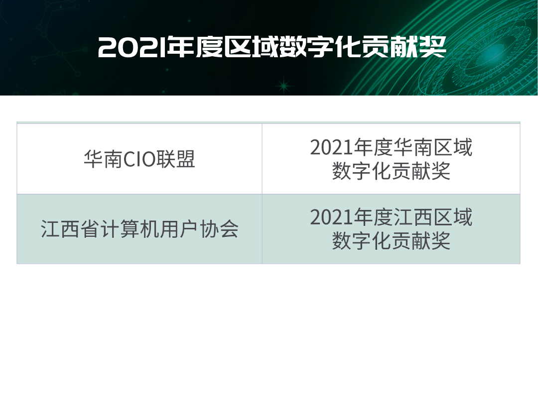 经过专家评审团严谨的案例分析与研究评审,综合各方投票及评审结果,最终评选出“2021年度中国杰出CIO”“2021年度中国优秀CIO”“2021年度中国优秀数字化团队”“2021年度中国优秀数字化项目”“2021年度区域数字化贡献奖”“2021年度行业优秀解决方案”“2021年度中国优秀数字化产品/解决方案”“2021年度中国信创产业优秀产品/解决方案”“2021年度中国双碳目标实践先锋企业”等奖项。