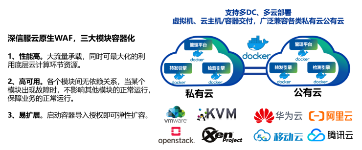 值得一提的是,除了过硬的安全能力,为了保障云上用户的应用安全,深信服Web应用防护系统将WAF核心组件转发引擎、检测引擎、集中管理等容器化,打造云原生WAF。深信服Web应用防护系统具备高性能、低延时、高可用和易扩展等特点,全面兼容适配复杂的云环境条件,为云上大流量、高并发、容器化等Web应用,如健康码等高并发的政务应用、手机银行等金融应用,持续交付高性能高可用的应用防护能力。