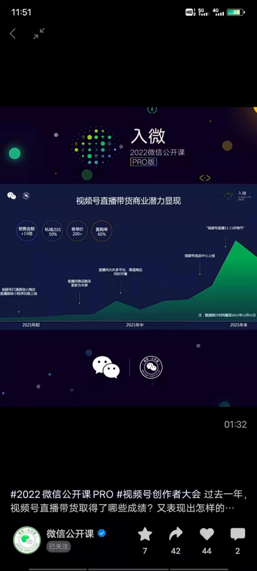 微信发布的一组数据证实了视频号直播蕴含的巨大潜力,在销售金额上,2021年年末,相较年初整体的销售金额增长了15倍,私域占比超过了50%。在用户价值上,视频号直播间的买家,展现出了超高的购买力和超强黏性。平均客单价超过200元,整体复购率也超过了60%。