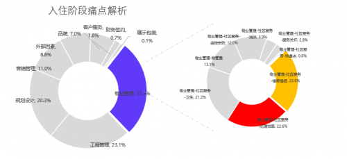 买房就像结婚,入住才是一地鸡毛的开始。入住阶段的首要问题是物业管理,占所有痛点的27.3%。在倾听这超过10万条客户声音之前,我们早已预料到物业管理是客户居住体验的最大痛点,但仍然低估了它的杀伤力。