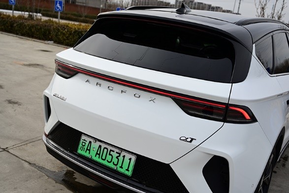 外观上阿尔法T足够个性鲜明,无格栅的电动化前脸即便不看绿色专属牌照,也知道它是一台新能源电动车型。而饱满流畅的线条,和“狐眼”式的LED日间行车灯又为其增添了极高的辨识度。