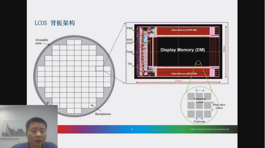 通过豪威集团市场经理李飞的讲解了解到的创新技术LCOS (硅基液晶:Liquid Crystal on Silicon) ,这是一种基于硅基板的反射式微显示技术,集合了LCD(液晶显示:Liquid Crystal Display)与CMOS (互补金属氧化物半导体: Complementary Metal Oxide Semiconductor) 技术。更小的尺寸,更