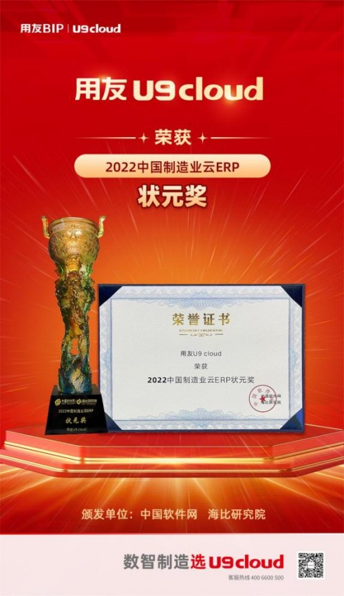 “2021制造业云ERP第一名”、“2022中国制造业云ERP状元奖”......用友U9 cloud一路奏凯,一项项第一的殊荣既是市场的肯定,也是不断前行的动力,用友U9 cloud将持续深耕数智化场景,为中国制造持续提供助力。