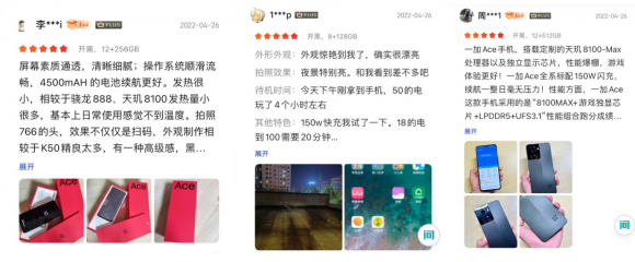 从首批购机用户评价来看,一加Ace的性能、散热、充电速度、外观手感收获了首批用户的肯定。用户上手实测了原神、和平精英、王者荣耀等主流热门游戏,一加Ace的帧率表现稳、温度控制好。特别是长寿版150W超级闪充,让用户体验到极速充电的快感。