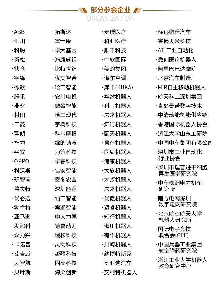 大会精准邀约机器人行业专业人士,除了本体制造商、核心技术提供商外,还会邀约减速机、伺服电机、控制器、芯片等上游企业,系统集成商、分销商、代理商等下游企业,3C电子、汽车零部件及整车制造、金属机械加工、食品包装、物流配送等应用行业知名用户,此外还有金融投资、行业协会、科研机构、高等院校等行业相关企事业单位。