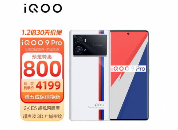 618期间,iQOO 9机型至高直降900,iQOO 9 Pro至高直降1000,均能享受至高24期免息活动,购机还附赠iQOO入耳式耳机一副,并额外多享用“半年延保”售后服务。让你买的实惠,用的放心。