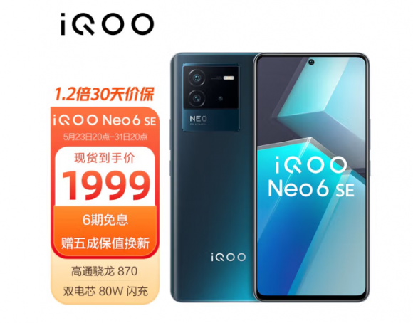 618期间iQOO Neo6 SE低至1999即可入手,可享受6期分期免息;iQOO Neo6机型2799即可入手,最高能享受12期免息分期,算下来每个月也就300块钱左右,还能额外享受半年延保,可以说很划算了~