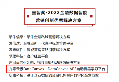为促进金融与科技更深度融合,推动金融行业数智化升级,九章云极DataCanvas公司基于端到端的金融解决方案,帮助客户搭建全行级自动机器学习平台,使模型开发和应用与智能营销、智能风控、智能运营等场景高度结合,满足面向团队的敏捷、自主建模需求,有效实现政府和企业生产效率的优化,推动业务发展,提升企业商业价值的增长。