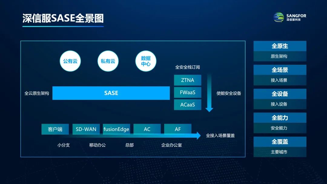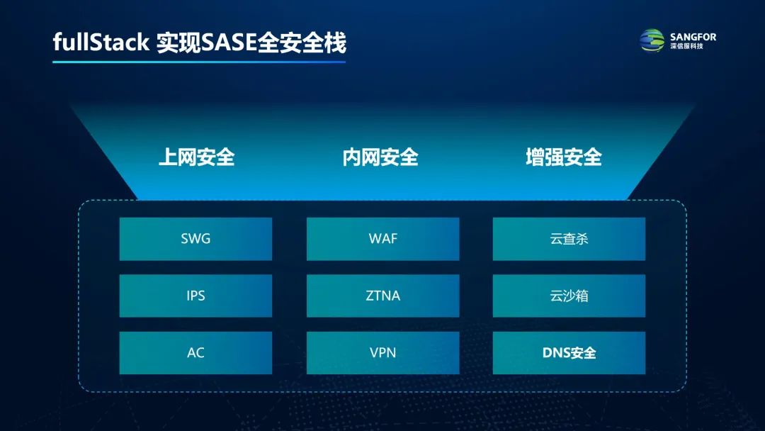 这背后都是因为深信服有完整的安全能力栈,通过2年的技术积累,把安全能力都搬上了SASE,让用户使用SASE更方便、更安全。