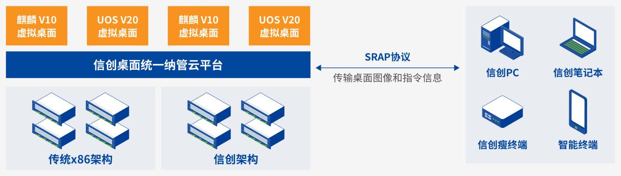 可利用现有传统电脑为桌面云接入终端,提升资源利用率,扩大信创办公的使用范围,尽快适应改造后办公环境。随着信创终端的不断推广和替换,最终实现所有员工全栈信创化办公的目标。