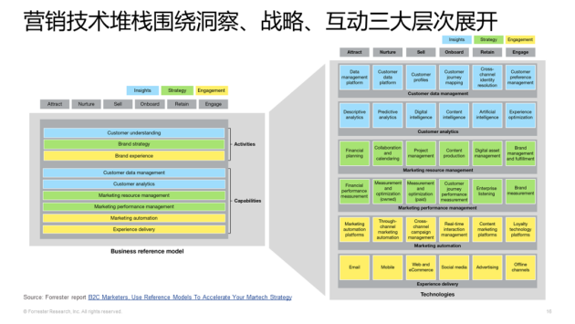 营销技术堆栈很复杂,但基本分为三大层次:洞察、战略和互动。