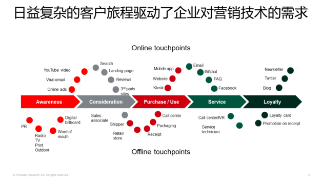 数据分析的相关技术或营销效果衡量的相关技术在中国也有较大的发展,究其原因,是因为现在的消费者旅程越来越复杂,有很多的线上渠道和线下渠道。从企业的角度出发,公域和私域环境日新月异,所以对于营销技术的需求也随之变化。