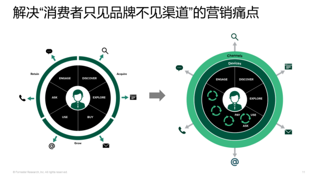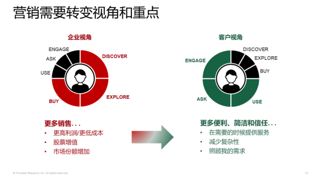 很多品牌在过去放在营销上面的精力是不够的。如果转变视角,站在消费者的视角来看,其实就会发现消费者更需要在购买的产品之后,能够跟品牌有更多的接触,能够获得品牌更多的信息,在需要的时候品牌能够提供服务。同时在整个流程里,消费者更希望能够更加的便利简洁,减少复杂性,并做到定制化。未来的营销便是理解消费者,所有的信息和互动都服务于了解消费者过去与品牌的互动历史,当下消费者的需求和未来消费者的期待。