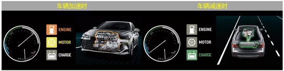 THS Ⅱ混动系统具有多种工作模式,例如红绿灯停车时,发动机停止工作,不消耗燃油,车内极为静谧,但空调等车内设施依然可以使用;车辆启动时,踩下油门,仅依靠电动机即可带动车辆前进,带来安静平顺的行驶体验,随着速度的提高,发动机适时介入,补充动力;如果中途需要急加速,发动机与电池系统同时做工,提升驱动力,带来更澎湃的爆发体验;当车辆减速时,车轮驱动电动机进行发电,高效回收能量并向电池充电,实现能量利用的最大化。