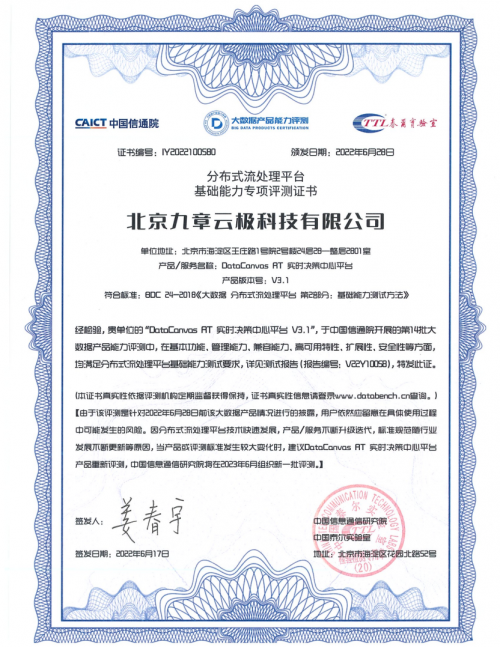 近日,中国信息通信研究院(以下简称“中国信通院”)第十四批“可信大数据”产品能力评测结果揭晓。中国信通院“可信大数据”评估评测已经成为大数据领域权威的第三方评测品牌,成为我国大数据领域供给侧产品研发和需求侧采购选型的风向标。九章云极DataCanvas RT实时决策中心以优异的性能表现通过中国信通院分布式流处理平台基础能力专项评测。
