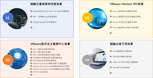 为了让企业用户真实地体验新一代VxRail的性能及效力,昆仑联通基础架构技术团队联合戴尔销售团队、售前团队,为企业级客户提供测试设备上架、基础环境调研及后续测试工作和服务。四大POC测试场景如下: