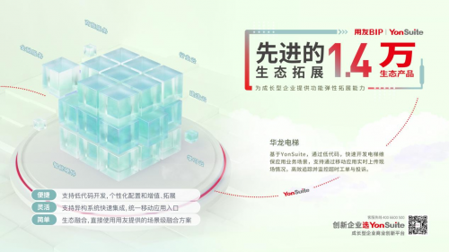 因此,对于成长型企业来说,通过部署实施YonSuite,既可以以SaaS模式按需选择营销、财务、人力、办公等企业数智化转型的通用服务,也可以开展个性化应用的开发,以平台的弹性、开放性和灵活性,支撑企业业务创新发展。