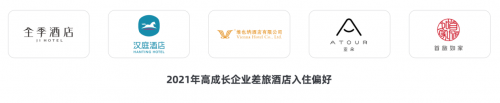 据《2021-2022高成长企业支出管理报告》统计,2021年最受高成长企业商旅人士欢迎的5大酒店品牌数据中发现,企业更偏向终端经济连锁酒店,因为这些酒店既可以满足企业的费控标准,同时也可以保证入住品质和服务。