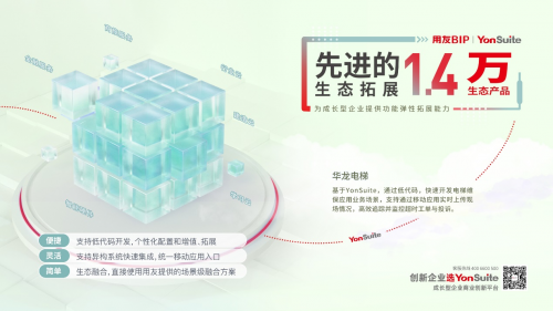 第四,YonSuite支持开箱即用,具备低成本、灵活、便捷等优势,与生态伙伴共同开发产品、共同服务客户也变得常态化。这不仅改变了企业选型ERP等大型软件的理念和方式,SaaS特有的订阅式服务更是改变了传统软件一锤子买卖的服务方式,倒逼厂商将客户成功的理念置于首位,通过低代码开发平台、集成平台等平台化的生态研发模式与众多ISV生态伙伴同步研发,助力企业获得更好的商业价值,帮助客户用好SaaS,助力客户成功。