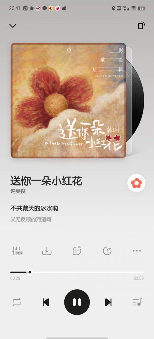 vivo i音乐10.0版本的情感向设计理念,在细节上也有所体现。作为本次功能更新的彩蛋,用户在完成歌曲收藏后,会发现原本平平无奇的红心按钮,有可能会变成重新设计的独特图标。这种日常操作下出现的惊喜,如同生活中不期而遇的小确幸,能够带给用户更别致的听歌体验。而小红花造型的创意收藏图标,也让人联想到歌手赵英俊的代表作《送你一朵小红花》,既是对他的致敬,也是对每一位勇敢生活的人的嘉奖。