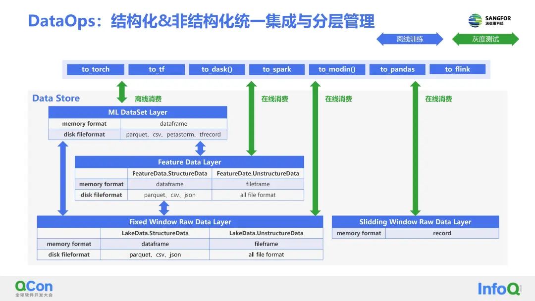 在离线AI算法训练的过程当中,就可以消费ML DataSet Layer的数据,实际上每一层的数据都可以被AI框架直接加载消费。