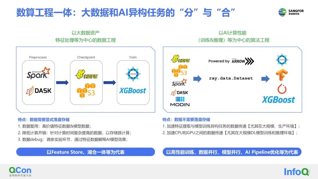 一种是以以AI计算性能(训练和推理)等为中心的算法工程为主,其特点是:数据不需要落盘存储,以此来实现加速特征提取与模型训练异构任务的数据传递(尤其在大规模、生产环境)、加速CPU和GPU之间的数据传递(尤其在大规模DL模型训练和推理环境)。