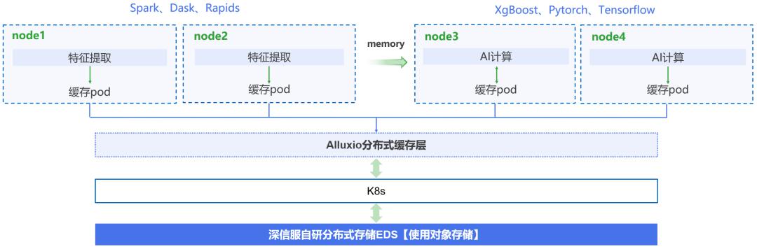 (2)深度学习训练数量很大且可能持续增加,分布式AI计算节点配置的磁盘容量有限,极容易出现无法存放全量训练数据的情况;