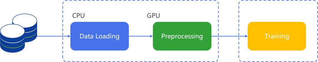 维度二:基于GPU加速和数据pipeline并行优化数据集预处理的时间;像计算机视觉类任务(钓鱼网页检测、桌面云视频帧超分优化、数据防泄密检测、边缘AI视频分析等)的算法训练会涉及大规模数据集的读取,这些任务都会存在数据集加载效率低导致GPU任务忙等,使得GPU利用率低问题。原生的pytorch&tensorflow框架的data loader是基于CPU实现数据的加载和数据的预处理,这势必会占用worker节点CPU大量的资源。然后将预处理之后的数据从CPU内存交换到GPU显存, 这也会增加IO的开销,降低端到端训练工作流的整体效率。