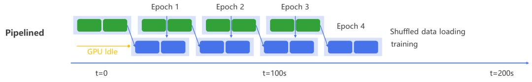通过将这两个子任务流水线化,可以实现两个子任务执行时间的重叠,最终数据加载和算法训练都可以高负载执行,从端到端加速AI训练速度。