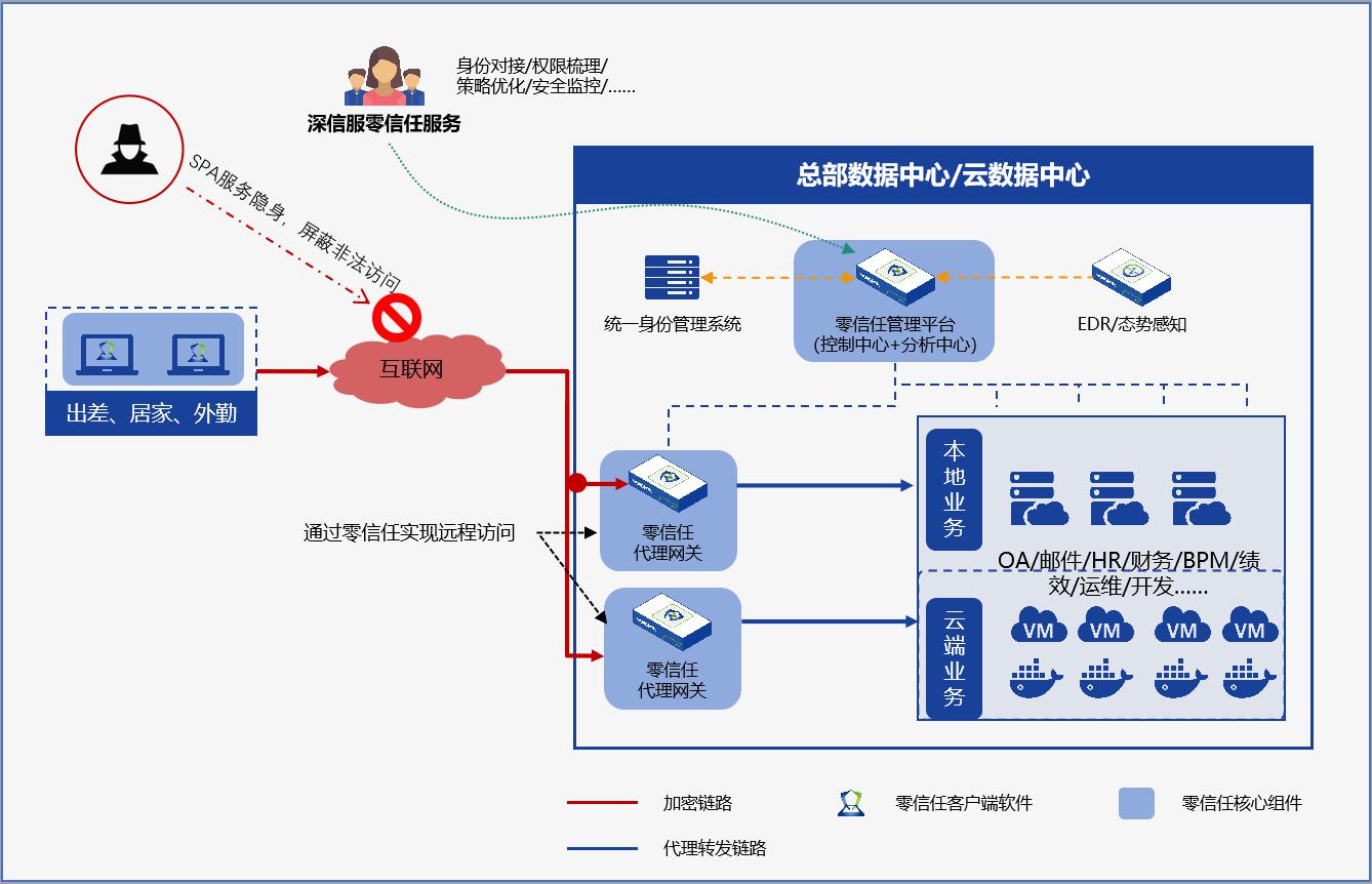 采用SDP技术路线,部署零信任平台和代理网关,能够实现远程访问安全。