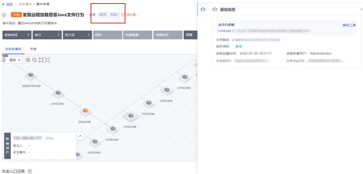 7月25日,深信服XDR检测到红队利用某OA服务器0day漏洞对某三甲医院进行攻击。此次攻击绕过了多个防护设备,只有深信服XDR通过IOA行为检测引擎独报事件,获得用户高度认可。同时,深信服XDR通过可视化进程链,将红队外联下载远控木马、内网横向移动等攻击行为完整呈现。深信服MDR安全服务专家溯源研判效率由此提升至分钟级,并快速完成处置加固。