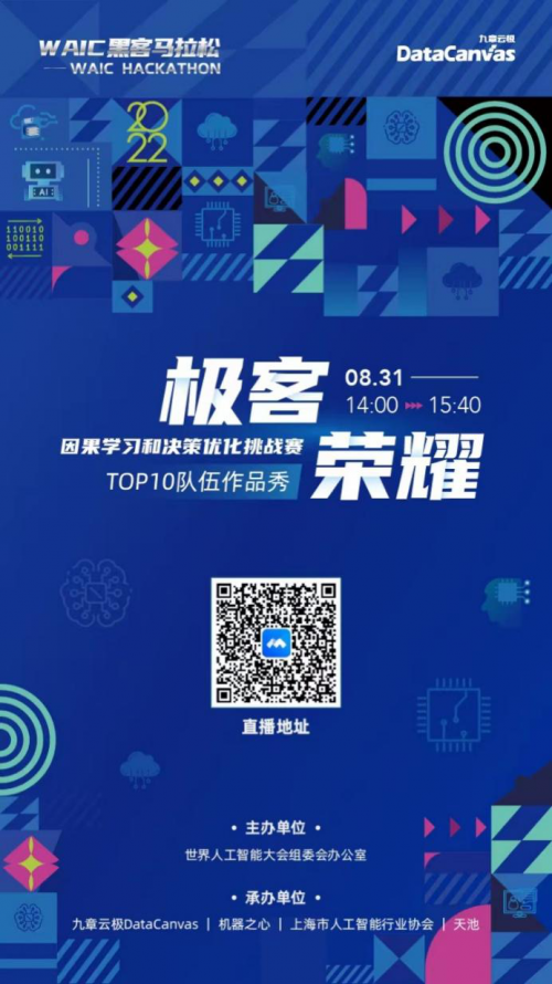 8月31日,九章云极DataCanvas公司将联合黑客松赛事主办方和承办单位共同举办【极客荣耀·因果学习和决策优化挑战赛TOP10队伍作品秀】。本次活动特别邀请挑战赛TOP10的参赛队伍做客直播间,从“赛题的解题思路,因果关系的识别,使用的算法和优化方案”等多个维度进行经验分享,展开一场因果学习的智慧盛宴。