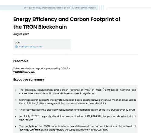 图说:《波场TRON能源效率和碳足迹报告》梗概