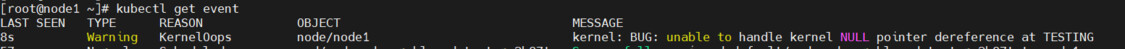 [root@node1 ]# sh -c "echo 'kernel: BUG: unable to handle kernel NULL pointer dereference at TESTING' >> /dev/kmsg"