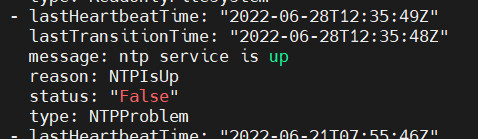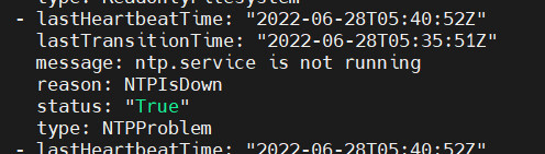 节点开启ntp服务后,node.status.conditions上报信息如下: