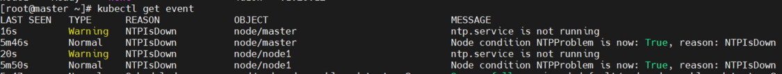 如宿主机中ntp异常即可在kubernetes中看到上报信息: