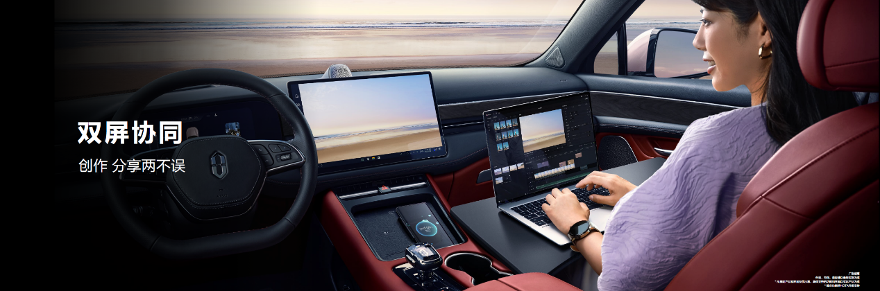 此外,问界M5 EV还新增了双屏协同和手机协同功能,电脑可以便捷地与车机互联;手机日程、导航等信息自动同步至车机,甚至在地库等信号不好的位置能够共享网络给车机。