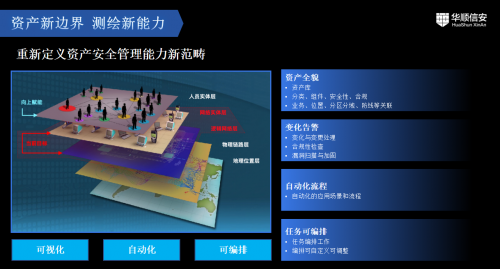 根据刘洋介绍,华顺信安的资产安全运营平台已经可以全面落地,除六大产品体系提供落地支撑外,平台也具备丰富的南北向接口,既可以将多种系统的资产及风险数据进行收集和管理,也可以赋能态势感知、安全大脑等上层管理平台。