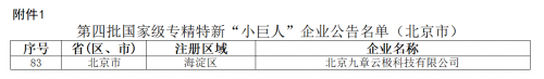 (来源:北京市经济和信息化局第四批国家级专精特新“小巨人”企业公告名单)