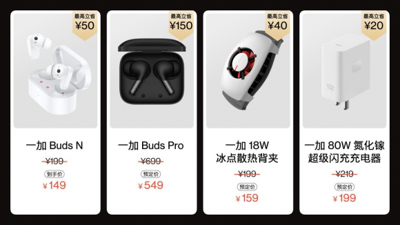 此外, “一加顶配IoT” 专场,包括一加 Buds Pro 智能主动降噪耳机、一加 Buds N真无线蓝牙耳机、一加 18 W 冰点散热背夹、80 W 氮化镓充电器等众多配件产品,至高立减 150 元。