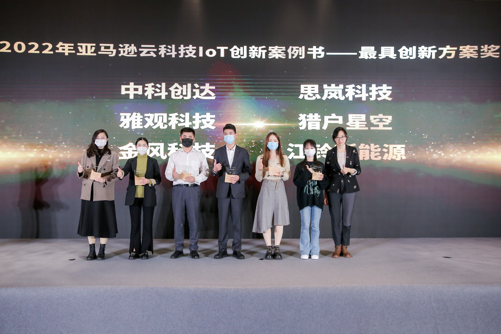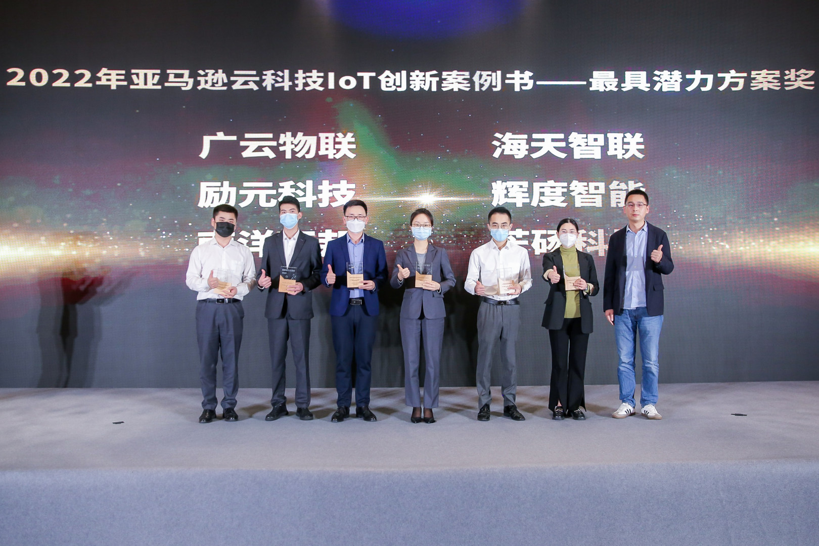 本次会议上,亚马逊云科技在众多客户案例中臻选出优秀案例,赋予《2022年亚马逊云科技IoT创新案例书》最具潜力方案奖和最具创新方案奖的荣誉。具体获奖名单如下: