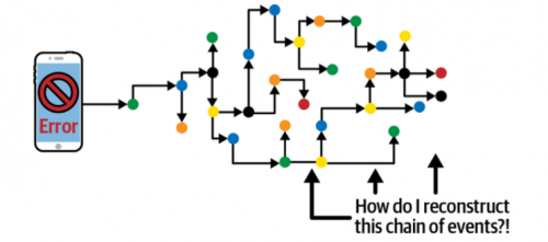 【图3 使用传统日志记录,查找构成特定事务的确切日志可能需要付出很多努力。一旦系统变得足够大,就几乎不可能了】