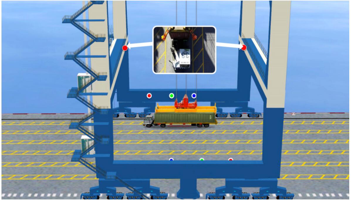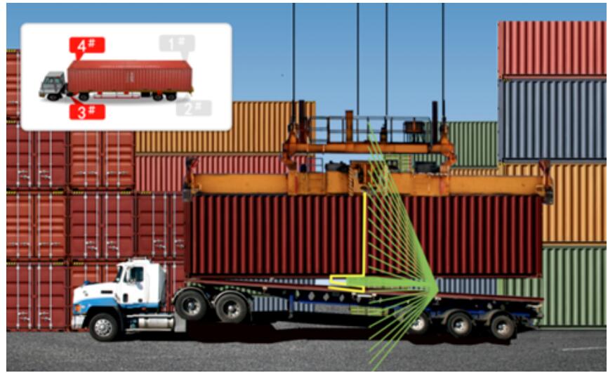 在集卡的卸箱作业过程中,利用边缘计算系统的激光扫描测距和模式识别,实现吊具、集装箱、集卡托架位置的实时监测,执行安全控制策略,来避免事故产生,保障作业安全。